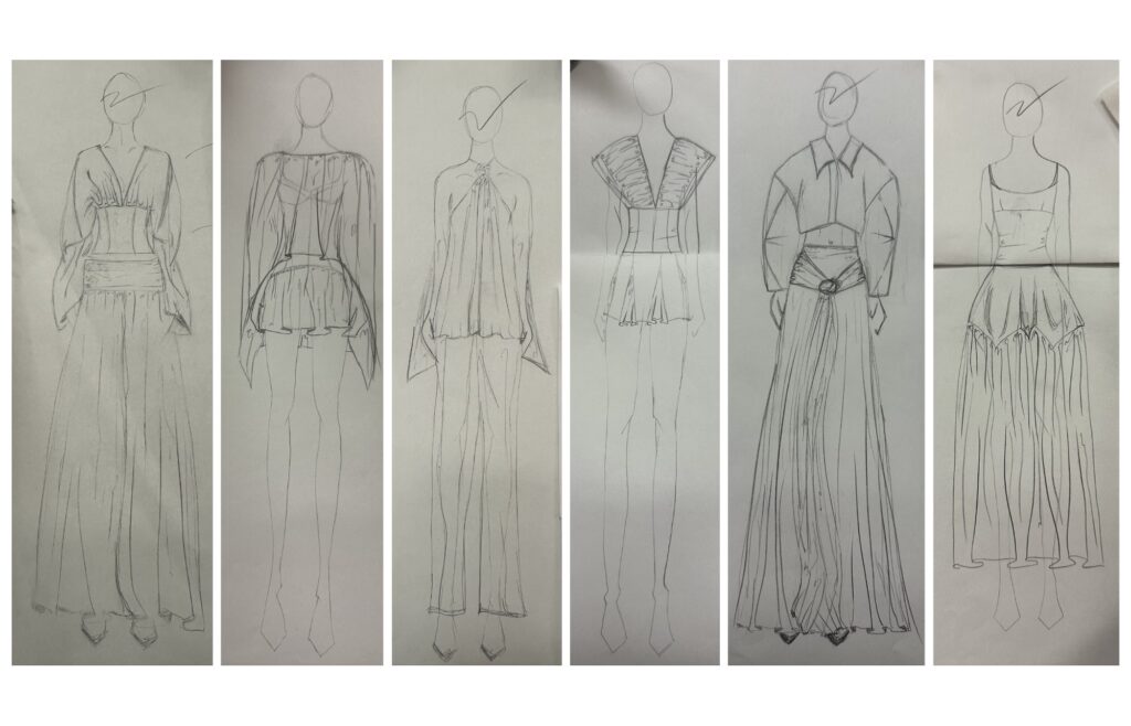 The collection opens with soft representations of light, serenity, and loyalty—foundational qualities often tied to the names we inherit and the people they come from. As the looks move down the runway, the designs begin to shift, mirroring the process of growing into and questioning that inherited identity. Silhouettes evolve from grounded and restrained to more fluid and expressive, capturing the tension between tradition and individuality. Each look represents a different stage of self-discovery, showing how identity expands beyond what is given. The final look closes the collection with the moment of choosing a new last name—a turning point where identity becomes intentional. Rather than leaving the past behind, it gathers pieces from every look before it, showing how history, growth, and personal choice come together in defining who you are.